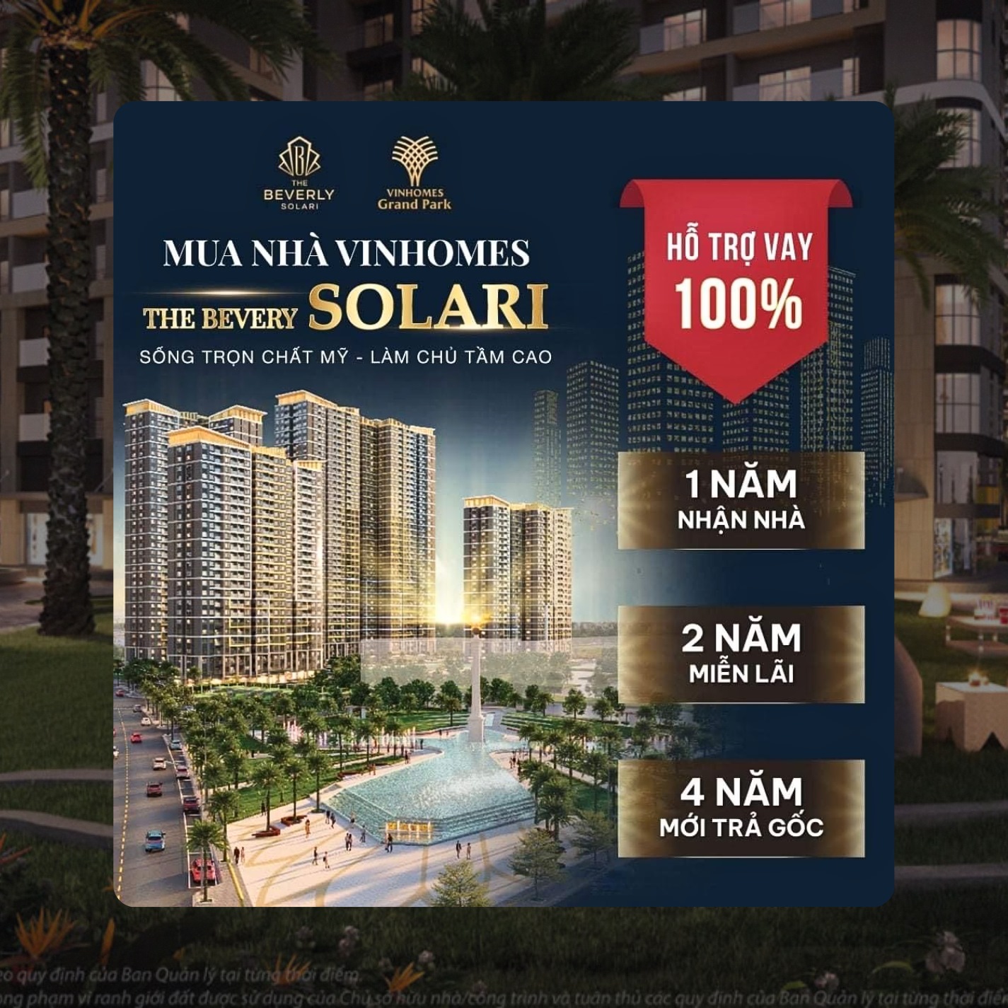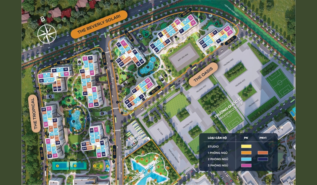 Beverly Solari là phân khu căn hộ cao tầng tiếp theo trong Đại đô thị Vinhomes Grand Park được thiết kế với 08 toà tháp căn hộ cao từ 24 – 39 tầng.