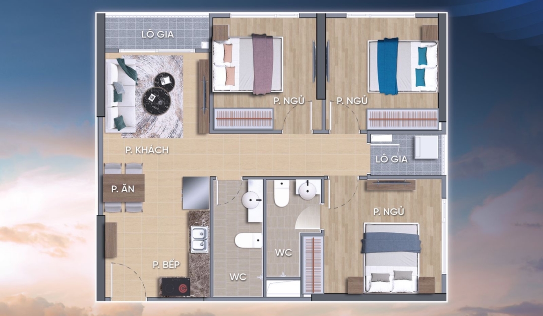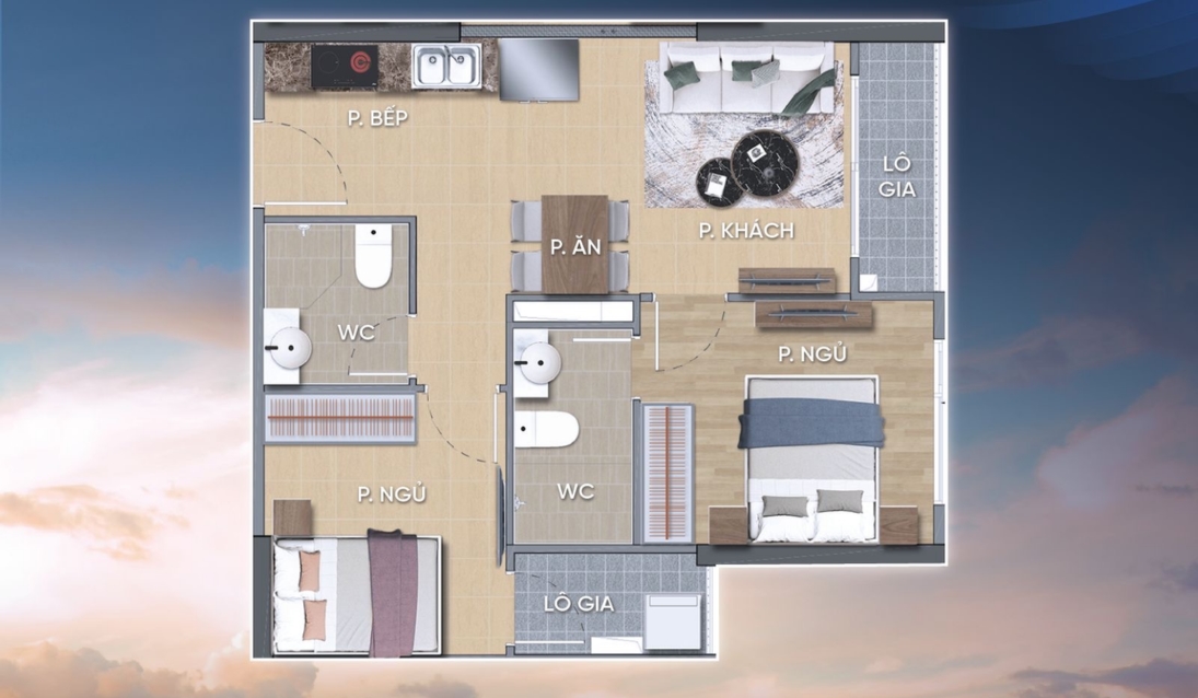 Bảng giá tham khảo trả góp căn hộ 2PN + 1: